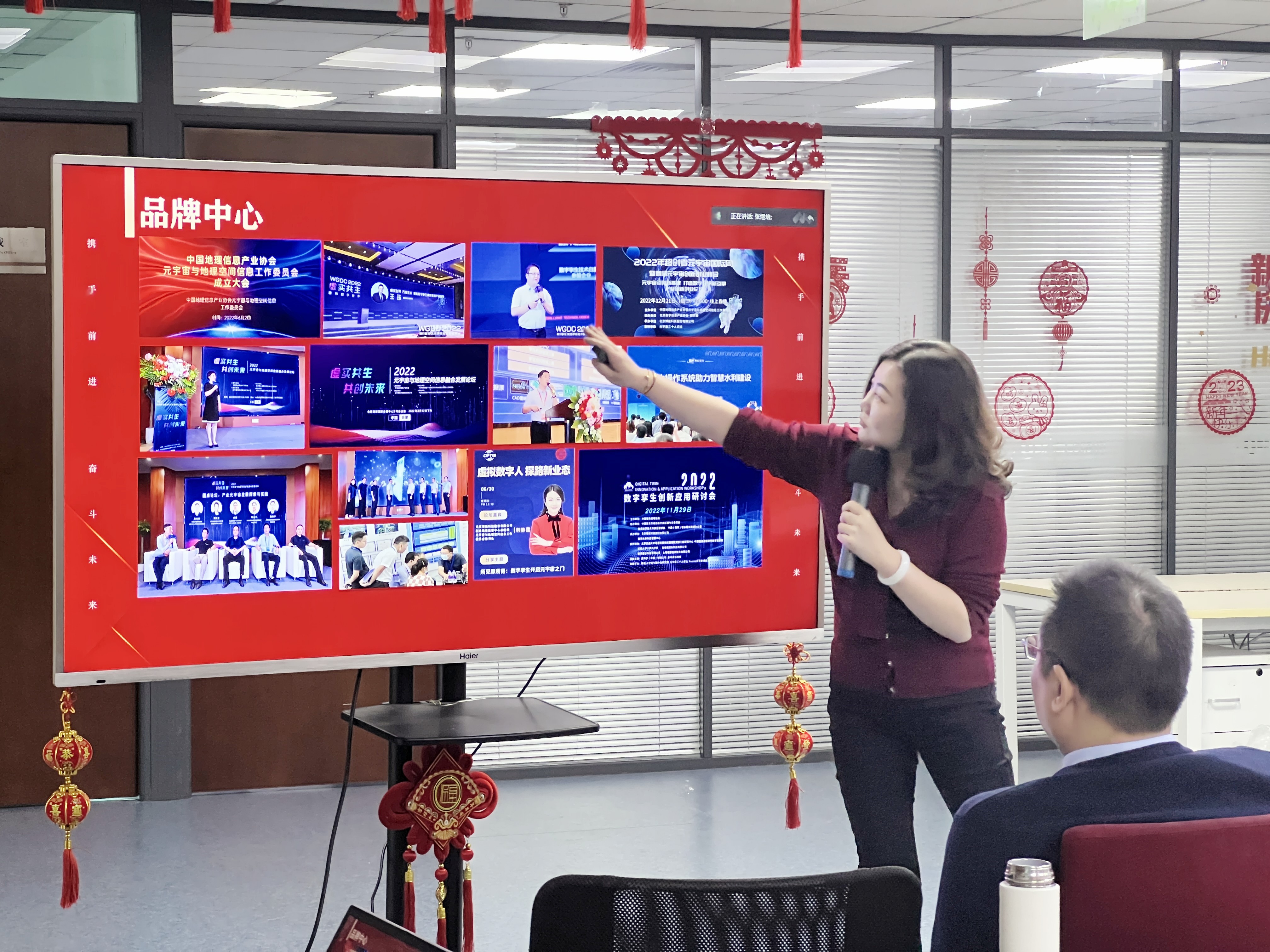 博能股份副总裁兼运营中心总经理韩静霆进行发言。韩总首先对运营中心2022年的工作情况进行了整体总结。新业务中心,在智慧城市、智慧高速公路、智慧港口等领域都有了突破性项目落地,为进一步扩大博能股份数字孪生产品的应用奠定了基础;品牌中心在品牌建设、品牌活动、合作伙伴开拓、品牌宣传等方面都取得了长足进展,将进一步推动公司开拓新的市场;人力行政部推动人才稳定性、人才结构、人才供给和员工关怀等方面,达成了可观的成绩;董秘办在拓展融资渠道、完成公司融资、推动公司上市等方面做出了非常好的成绩,为公司的稳定运营贡献了力量。