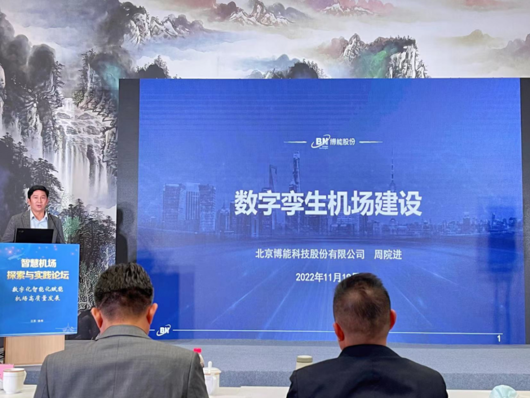 2022 年 11 月19-20日,由江苏省交通运输厅、江苏省科学技术协会、江苏省工业和信息化厅、江苏省通信管理局、徐州市人民政府指导,江苏省综合交通运输学会、徐州市综合交通运输学会主办,江苏省综合交通运输学会公路分会、江苏省综合交通运输学会信息化工作委员会承办的“第六届交通信息化论坛暨智慧交通产品技术博览会”在徐州顺利举行,北京博能科技股份有限公司出席本次大会,北京博能科技股份有限公司副总裁周院进先生受邀出席“智慧机场探索与实践分论坛”并发表了《数字孪生机场建设》主题演讲。