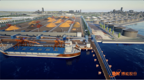 基于博能数字孪生操作系统BLinkOS,打造的数字孪生港口平台,通过在数字空间对港口的物理设备设施、车辆船舶进行精准数字化映射,无论是人员轨迹、作业设备动态、还是船舶作业信息,均可在平台上实时数字可视化,进一步提升了码头安全生产管控和应急指挥能力,创造良好的安全效益和经济效益,形成在线三维显示、作业可视化,构建起高效安全的数字化码头、透明可视的智能管理体系,打造智慧港口生态圈。