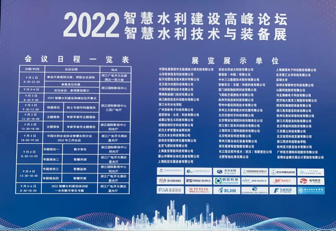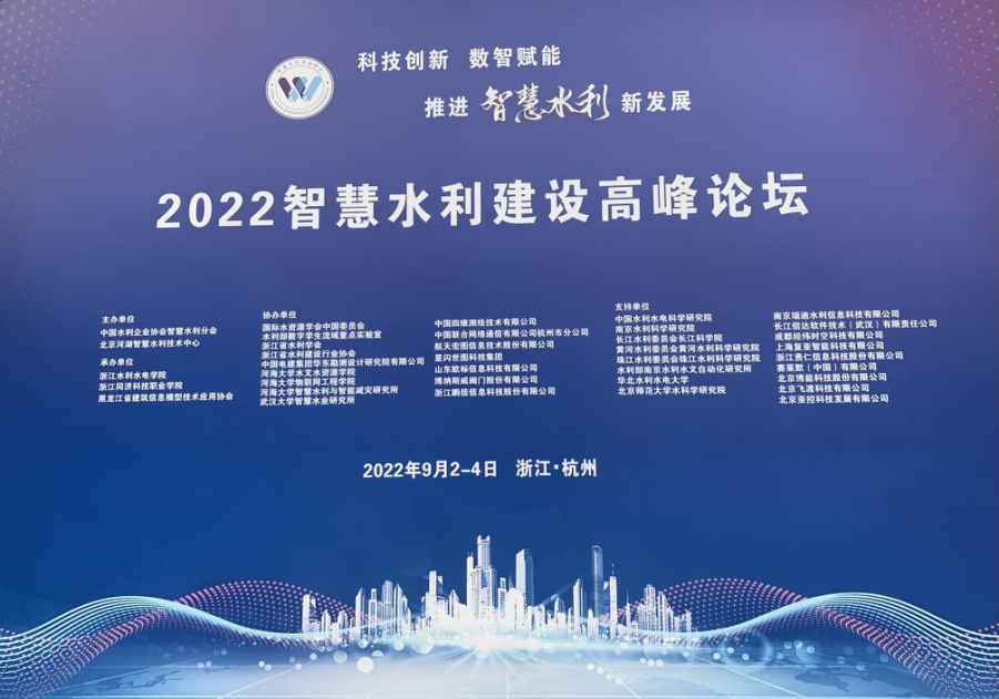 2022年9月2-6日,由中国水利企业协会智慧水利分会主办的2022智慧水利建设高峰论坛”在杭州召开。论坛盛邀国家部委及地方政府主管部门领导、院士、专家作主旨报告并和与会代表开展对话、交流和研讨,论坛期间还配套进行智慧水利建设培训班、规划解读、技术分享等系列专题活动。