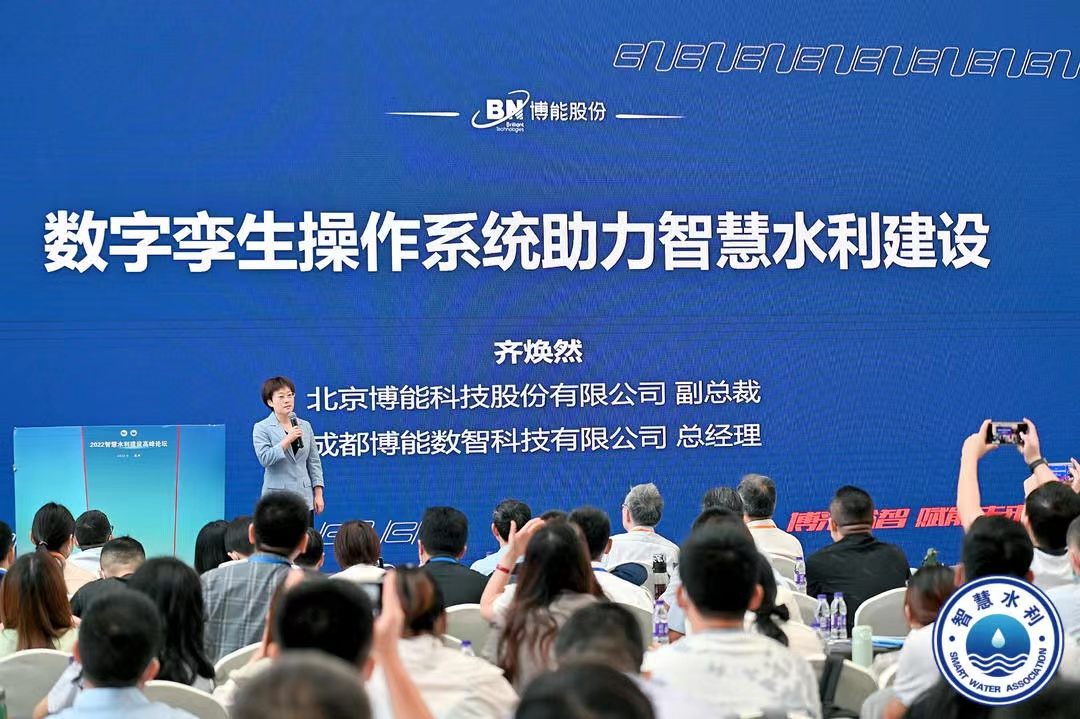 北京博能科技股份有限公司作为元宇宙基础设施新基建服务商,也是数字孪生平台产品提供商,受邀出席此次论坛。博能股份副总裁兼成都数智科技有限公司总经理齐焕然女士在论坛上发表了《数字孪生操作系统助力智慧水利建设》主题演讲,把数字孪生的技术与应用带入了智慧水利,受到了在场领导、专家和企业的广泛关注。