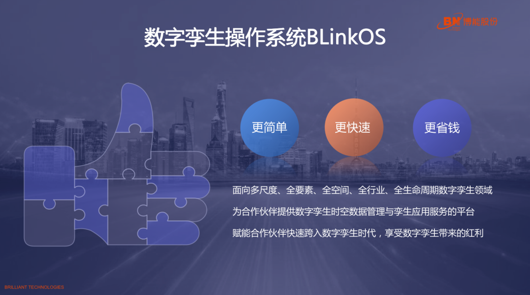 博能股份多年深耕数字孪生技术的研究与实践,2022年,博能股份正式推出数字孪生操作系统BLinkOS,该平台可以支持多种数据模型,快速搭建数字孪生场景、实现Web端流畅展示。并且搭建的数字孪生场景可离线开发成一个空间信息直观的、可交互、易于设计、易于集成的产品,可应用于智慧城市、智慧交通、智慧园区、智慧能源等行业领域的数字孪生平台及应用的开发。