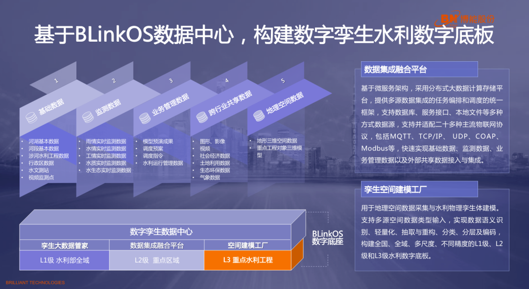 基于BLinkOS提供的水利物理实体数字孪生实时渲染服务,通过数学模型、水利知识构建水利专业模型,形成基于流体力学的水利专业融合仿真模型,驱动水利应用,实现流域防洪、水资源管理与调配、防洪兴利智能预报调度、工程安全智能分析预警、生产运营智慧综合管理、库区智慧巡查监管、综合决策支持等业务应用,具备预报、预警、预演、预案的特点,最终构建水利智慧大脑。