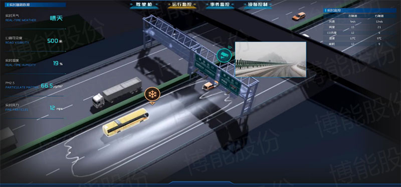 在高速公路领域,博能股份构建的智慧高速数字孪生可视化综合运管指挥平台,融入5G、物联网、大数据、云计算、数字孪生、GIS、BIM、车路协同等关键技术能力,全面实现高速公路规划、建设、管理、养护、运营、出行服务等全方位、全生命周期的应用服务体系,实现安全高效、智能交互、闭环普惠、持续发展的智慧高速生态。