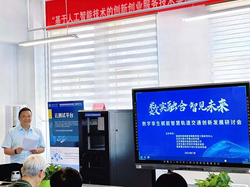 2023年7月19日,由高速铁路网络管理教育部工程研究中心、北京交通大学唐山研究院、北京博能科技股份有限公司、北京交通大学软件评测实验室、国家重点研发计划项目“基于人工智能技术的创新创业服务技术集成研发与应用示范”项目组联合主办的“数实融合,智见未来——数字孪生赋能智慧轨交创新发展研讨会”在河北唐山北京交通大学唐山研究院成功举行。