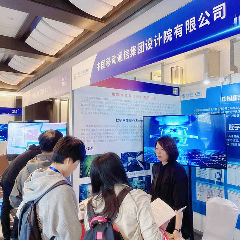 博能股份联合中国移动通信集团设计院有限公司、中国科学院计算技术研究所共同参展,现场展示了自主研发的数字孪生操作系统BLinkOS和面向多领域的数字孪生解决方案。