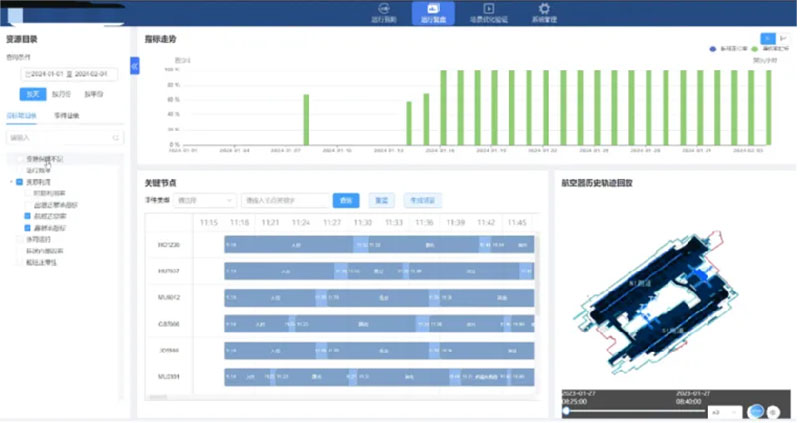 提供生产运行优化平台:构建基于时空和航班信息集成为一体的机场生产运行仿真优化工具,依据情景分析管理方法论,实现主动发现机场运行问题、优化问题、虚拟验证、对比优化报告的业务流程。