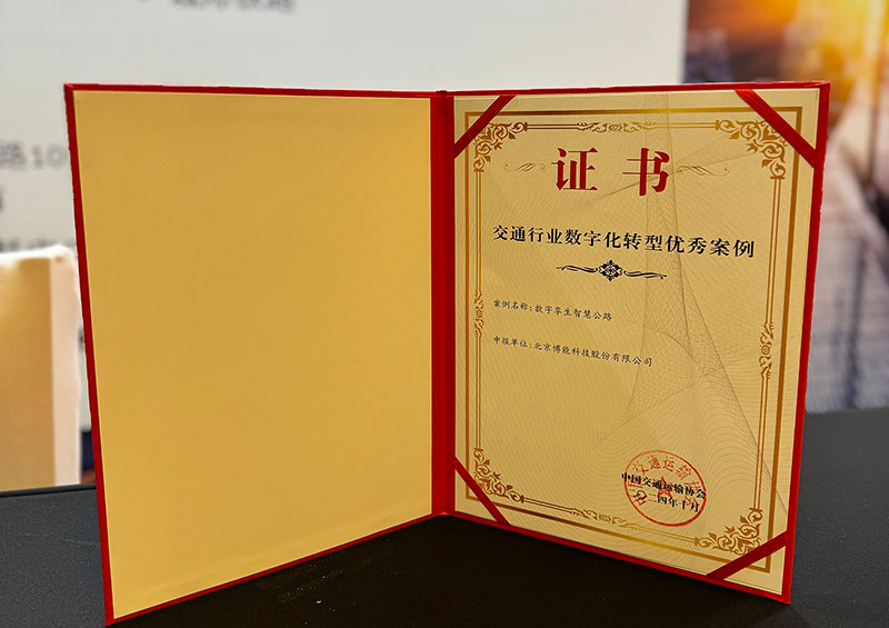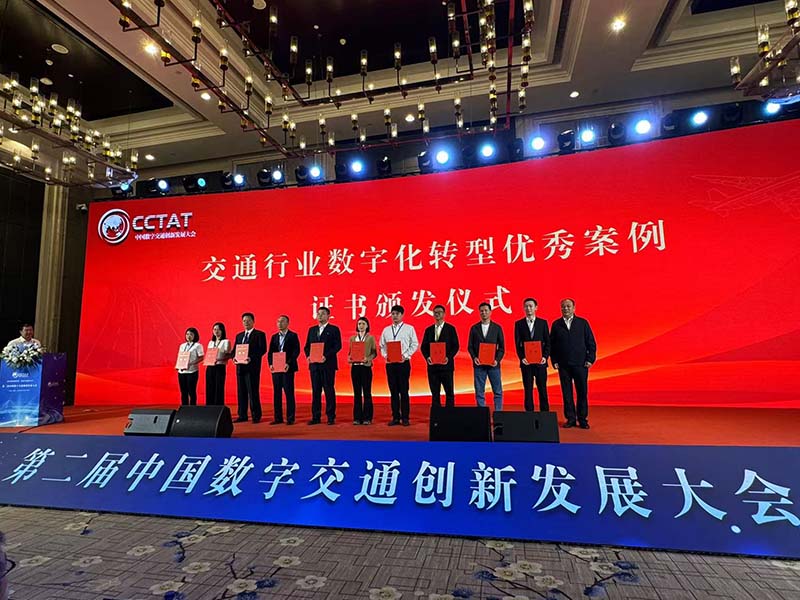 大会同期举行了交通行业数字化转型优秀案例颁奖仪式,博能股份数字孪生智慧交通解决方案获此殊荣,并由与会代表上台领奖。