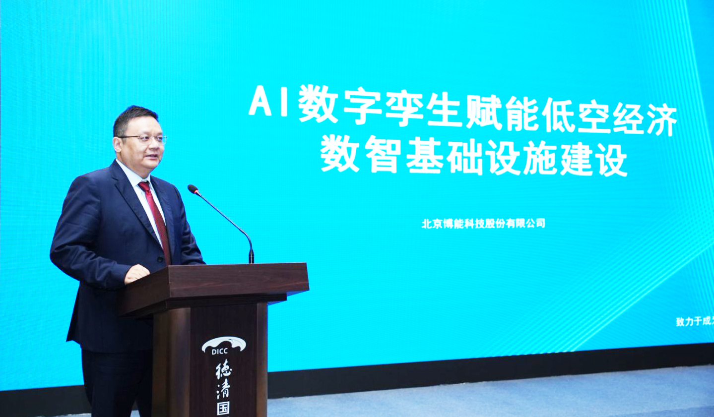 博能股份董事长兼总裁王珏作《AI数字孪生赋能低空经济数智基础设施建设》主题演讲
