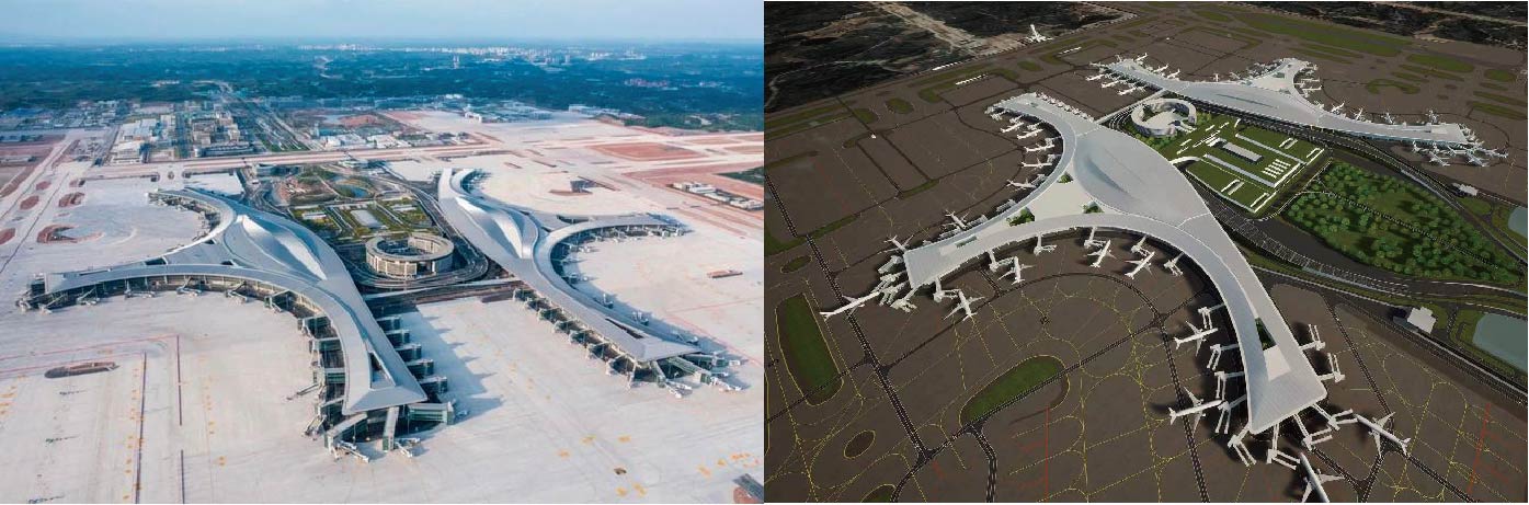 天府机场航站楼实拍图与数字孪生天府机场平台航站楼