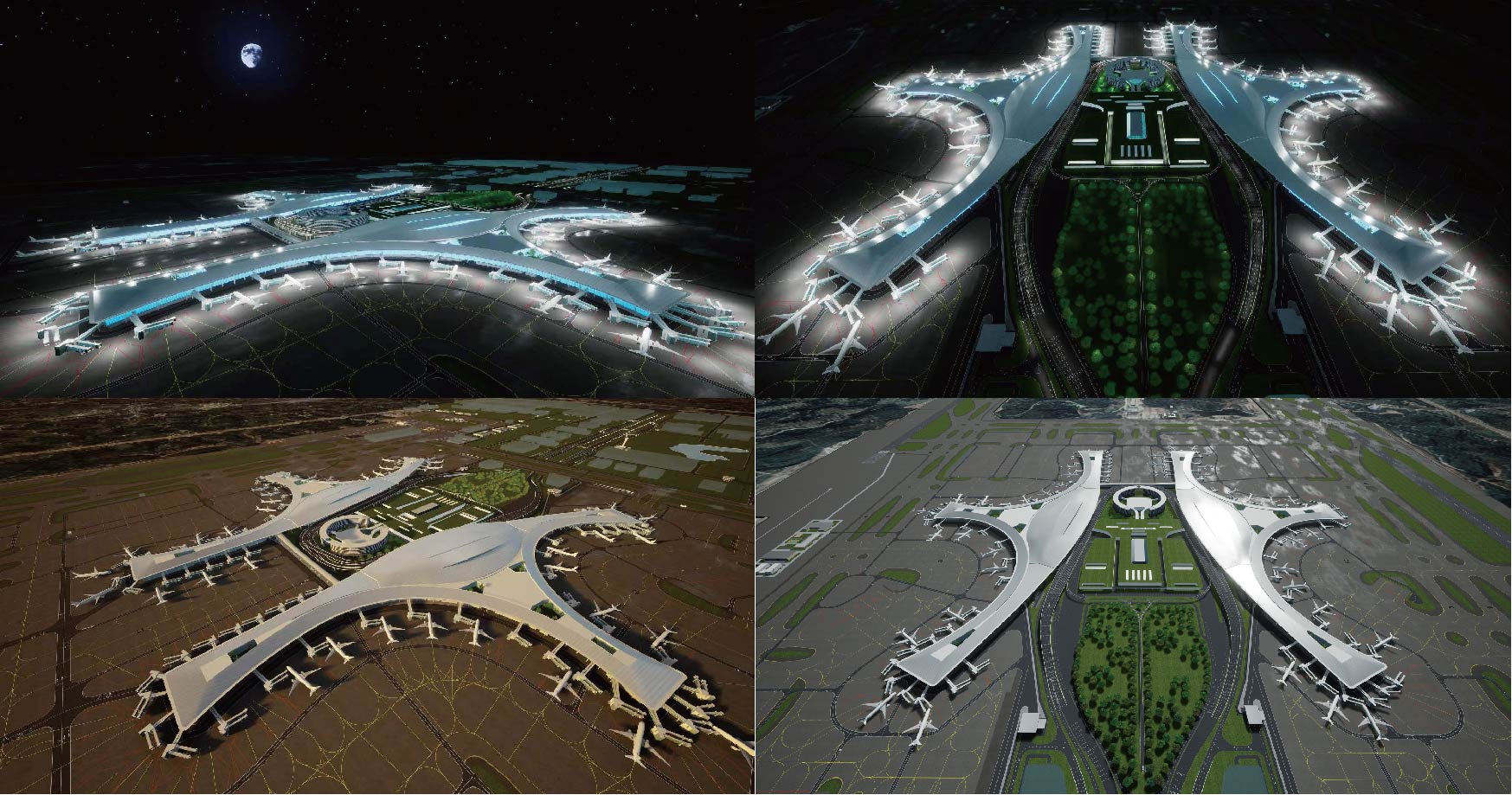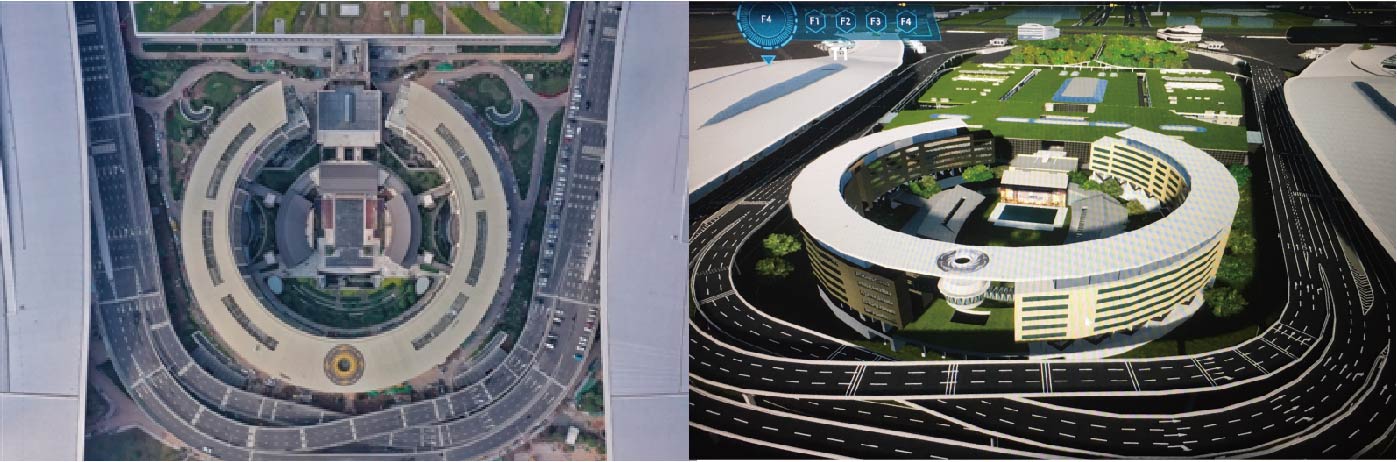 天府机场鸟瞰实拍图与数字孪生天府机场平台俯视图