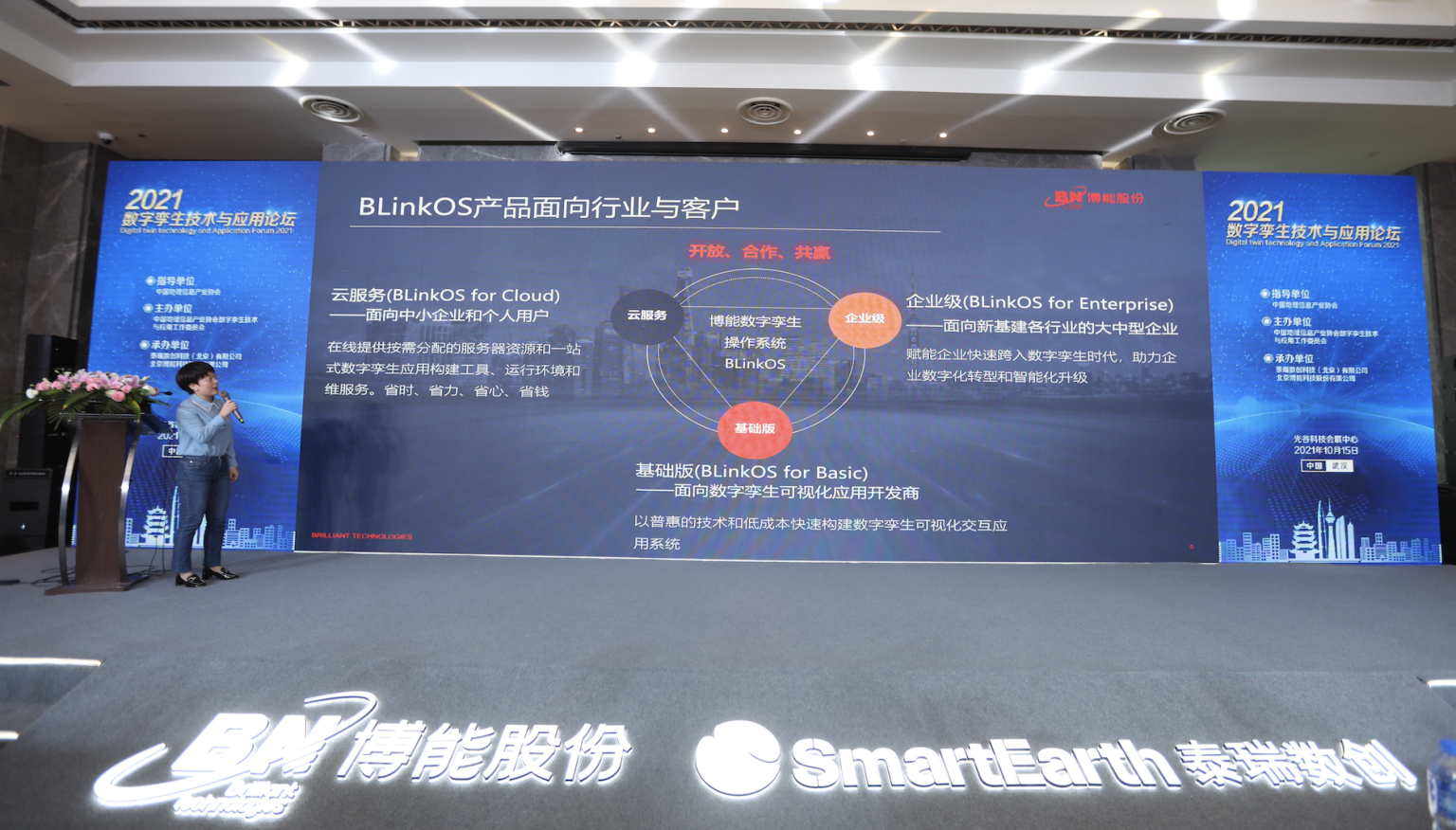 在大会中,北京博能科技股份有限公司《数字孪生操作系统BlinkOs》产品重磅发布。该产品是利用GIS、BIM、实时渲染、GPU云化等技术,为各行业数字孪生可视化交互应用的搭建和运行提供一站式服务,支持大屏、PC端、平板、手机、VR/AR及XR等多终端运行访问,实现快速交付具有极致体验的数字孪生可视化应用系统,降低了中小企业参与数字孪生系统建设的门槛,让中小企业以低成本跨入数字孪生时代,享受数字孪生红利。