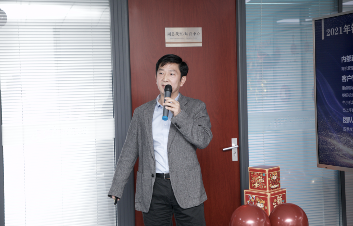 营销中心总经理周院进上台演讲。周总表示,2021年,疫情还在影响我们的生活和工作,行业竞争也变得更加激烈,在如此困境下,我们依然取得了一些可观的成就。我们持续在智慧民航领域大力拓展,目前已完成全国四十余家大中型民用航空机场的数字孪生机场平台建设,完成了百余个智慧民航业务应用系统的拓展与部署,覆盖的领域逐步扩大。