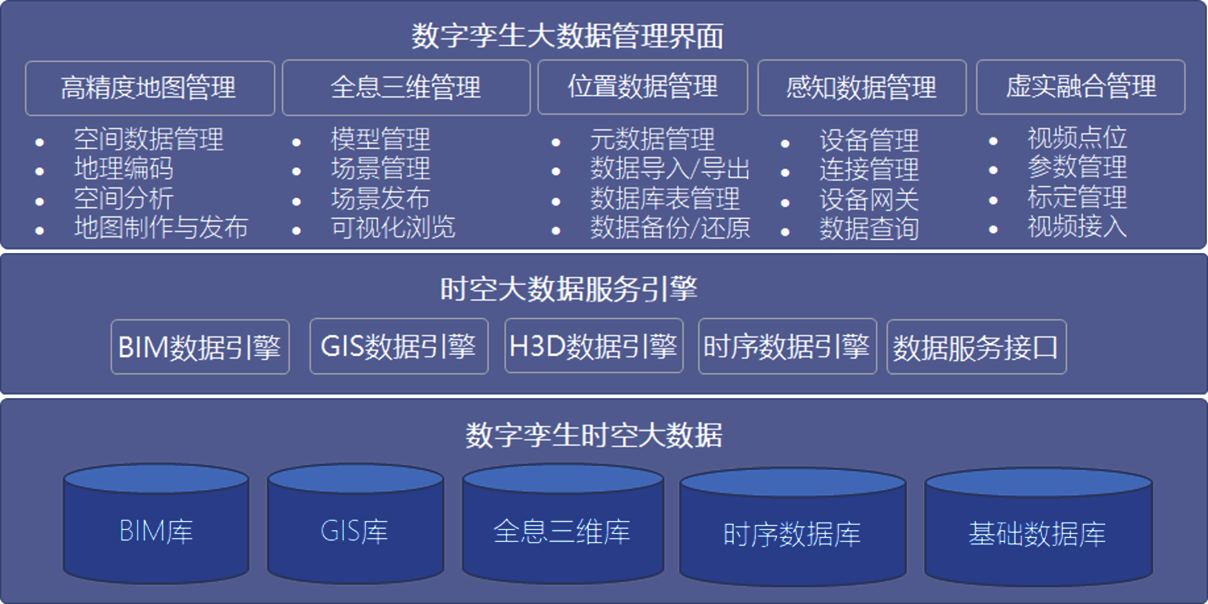 数字孪生大数据管家系统实现企业全域全要素数字孪生时空数据资产的管理,包括高精度地图数据、全息三维数据、位置数据、物联数据等,内置多类型时空大数据引擎,提供统一的数据服务,实现时空大数据的存储和高效管理。