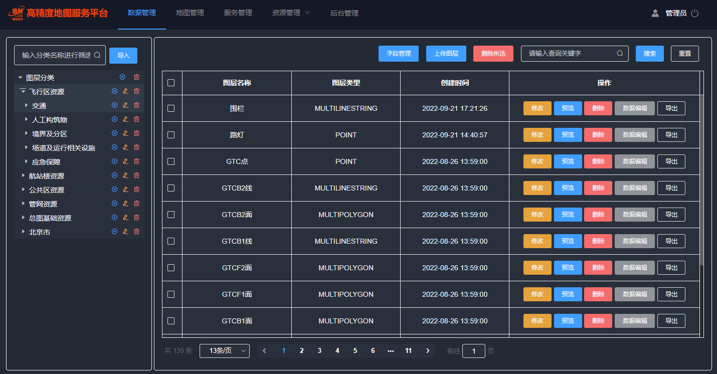 平台提供了在线的地理信息数据管理功能,可以进行数据分类管理、数据预览、数据编辑等操作,实现了数据的在线集中管理,便于数据共享和维护。